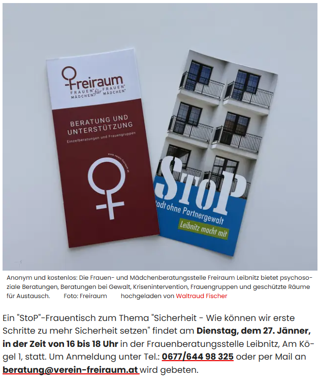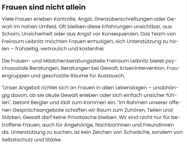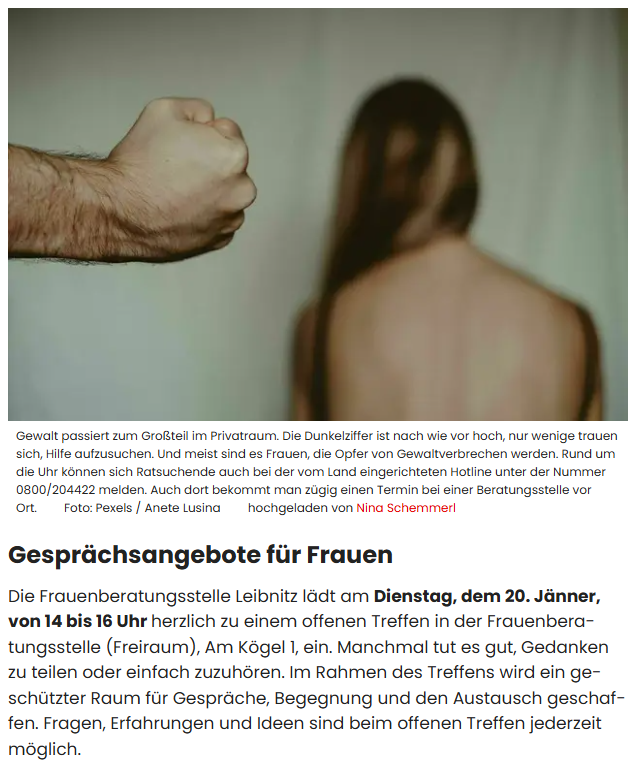 Frauen sind nicht allein – Leibnitz bietet wichtige Hilfe an