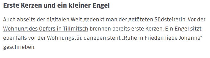 Welle der Betroffenheit: „Ich zünd‘ dir ein Licht an, liebe Johanna“