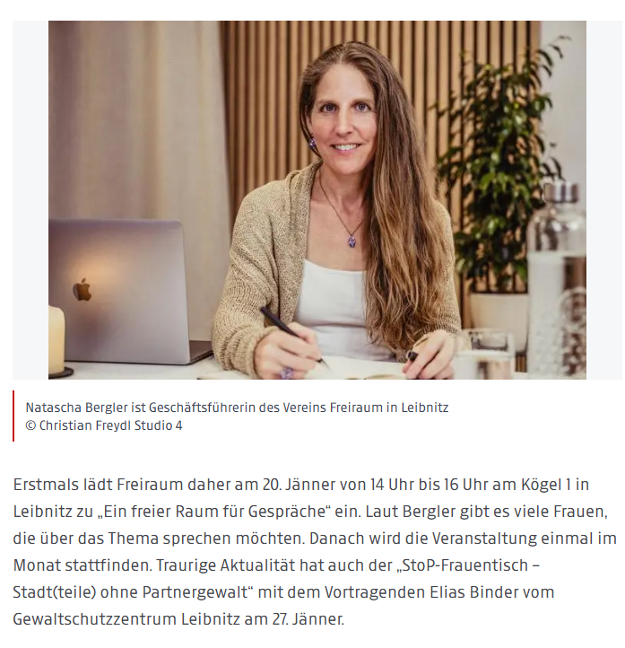If you’ve found a malfunction or have ideas for improvement, we’ll be happy to hear from you. You can reach out to the website’s operators by using the following email beratung@verein-freiraum.at